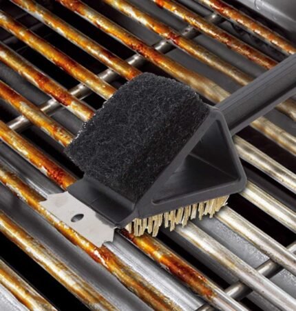 Optimice el mantenimiento de su parrilla con esta herramienta integral, diseñada para ofrecer una limpieza profunda y eficiente. Gracias a su sistema de triple acción, permite remover desde la grasa más persistente hasta los residuos más pequeños con total facilidad. ✨