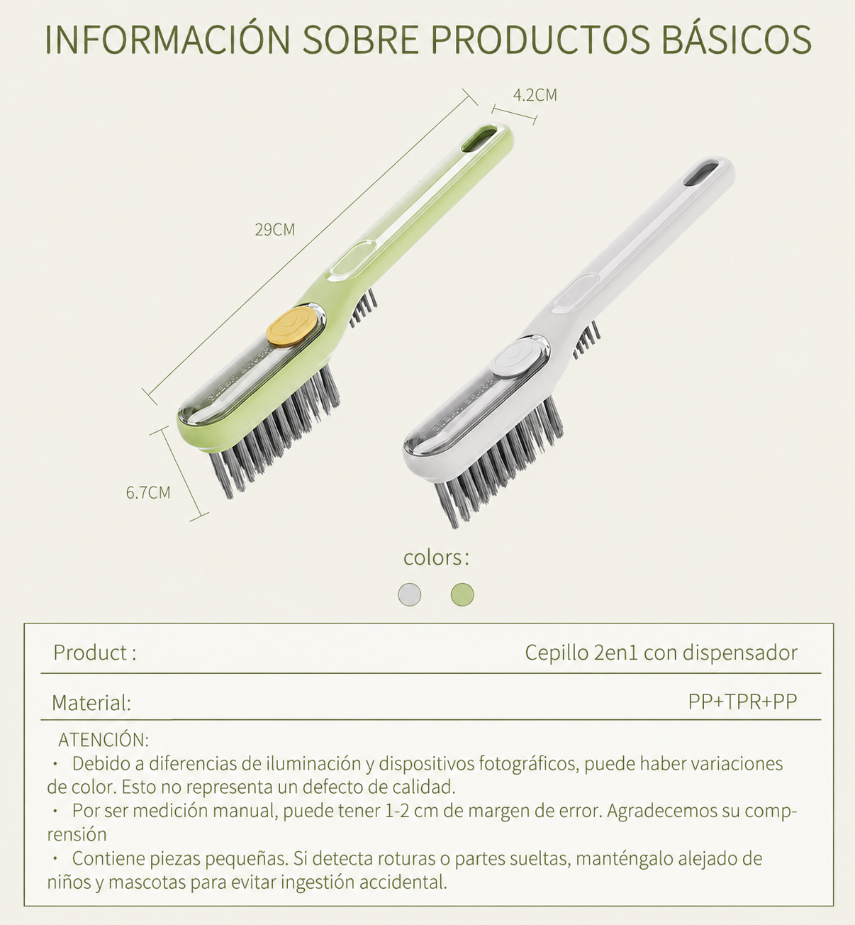 Contenido: 1 Cepillo Dosificador Grande + 1 Cepillo Metálico Chico.