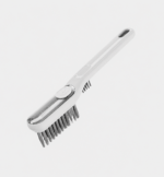 Cepillo Chico (Cerdas Metálicas): Equipado con alambres de alta resistencia, es la herramienta de fuerza del kit. Está pensado para remover incrustaciones extremas como grasa carbonizada en hornallas, sarro endurecido en griferías, óxido en herramientas o restos de comida pegada en parrillas.