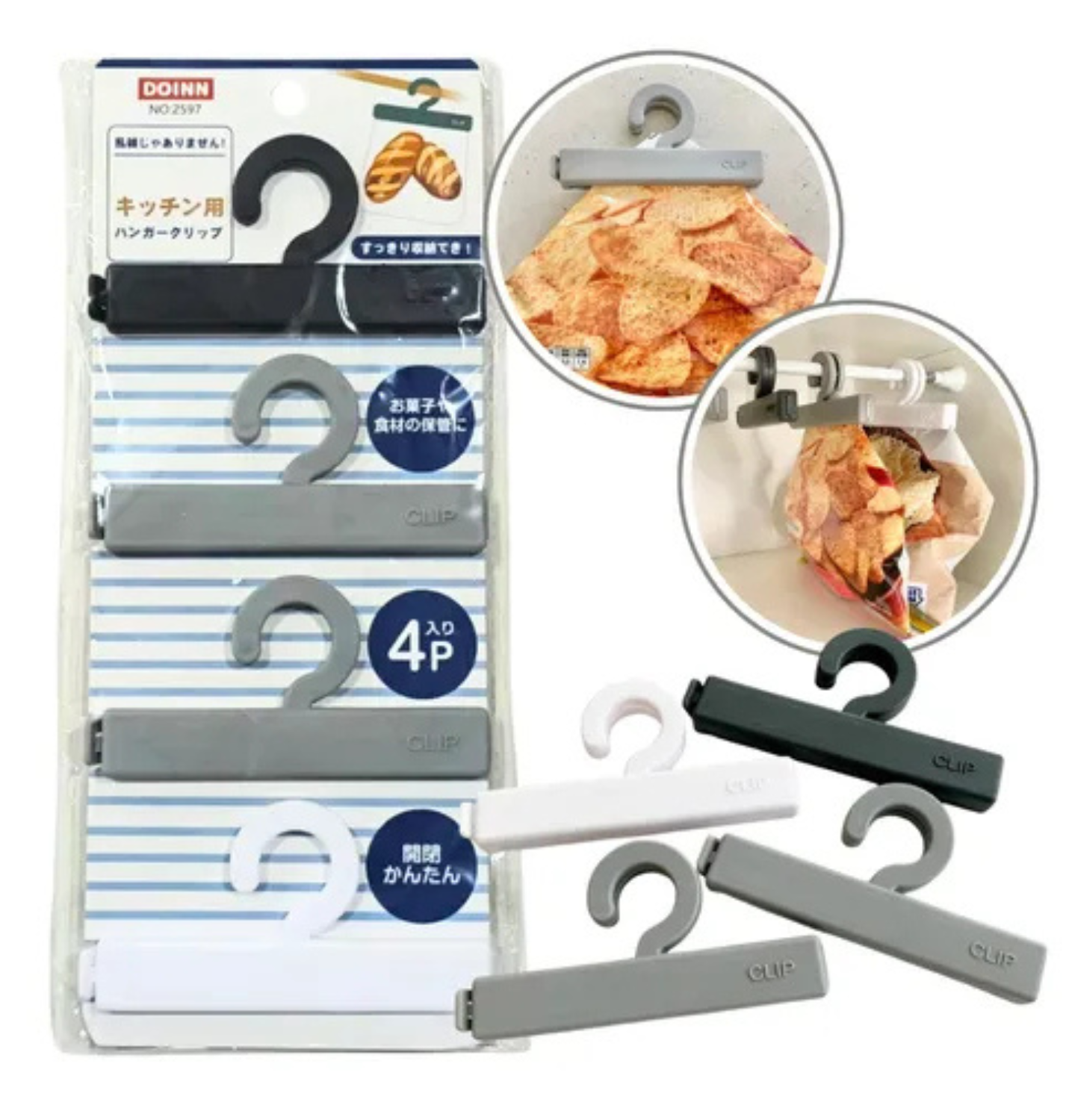 Cierra bolsas x 4 con Gancho organizador
