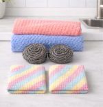 • 2 Paños de Microfibra Ultra-Absorbentes: De textura increíblemente suave (aprox. 25×25 cm), ideales para secar superficies delicadas, grifería o electrodomésticos sin dejar vetas ni pelusas. 🌬️✨