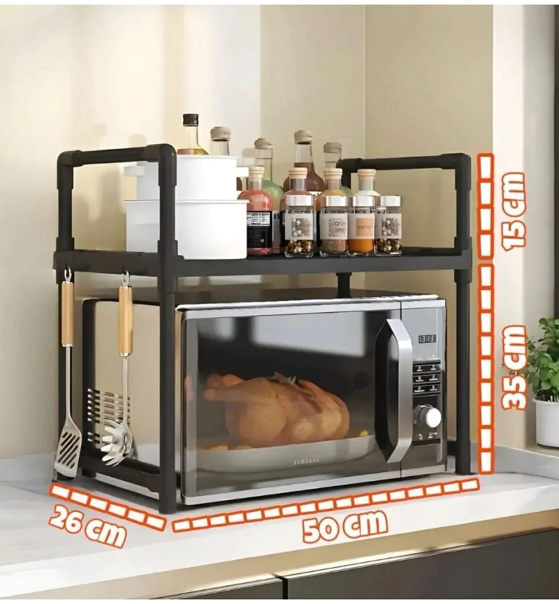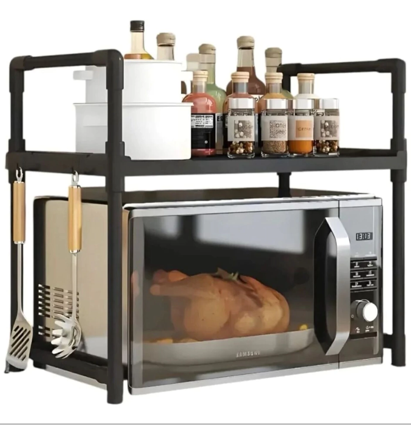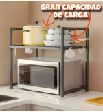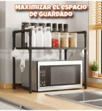 Optimizá tu cocina con un soporte diseñado para durar. Este estante es la solución definitiva para aprovechar el espacio sobre el microondas o el horno eléctrico, permitiéndote organizar especias, vajilla o pequeños electrodomésticos con total seguridad. ✅