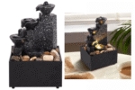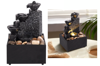Crea un rincón de serenidad en tu escritorio o mesa de noche con esta encantadora fuente de agua. Su diseño único de vasijas en cascada, complementado con rocas, ofrece una experiencia visual y auditiva de total tranquilidad.