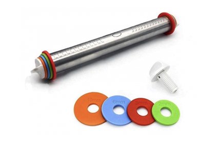 Palo de amasar de ACERO INOXIDABLE, con aros para regular espesor de amasado