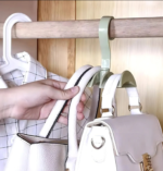 El cabezal giratorio 360° es la clave de su practicidad, ya que te permite acomodar los bolsos en la dirección que más te convenga para maximizar el lugar disponible. Al apoyar las manijas sobre su base curva de gran soporte, evitás que las correas sufran daños o se deformen por estar amontonadas, manteniendo la estética original de tus complementos preferidos.