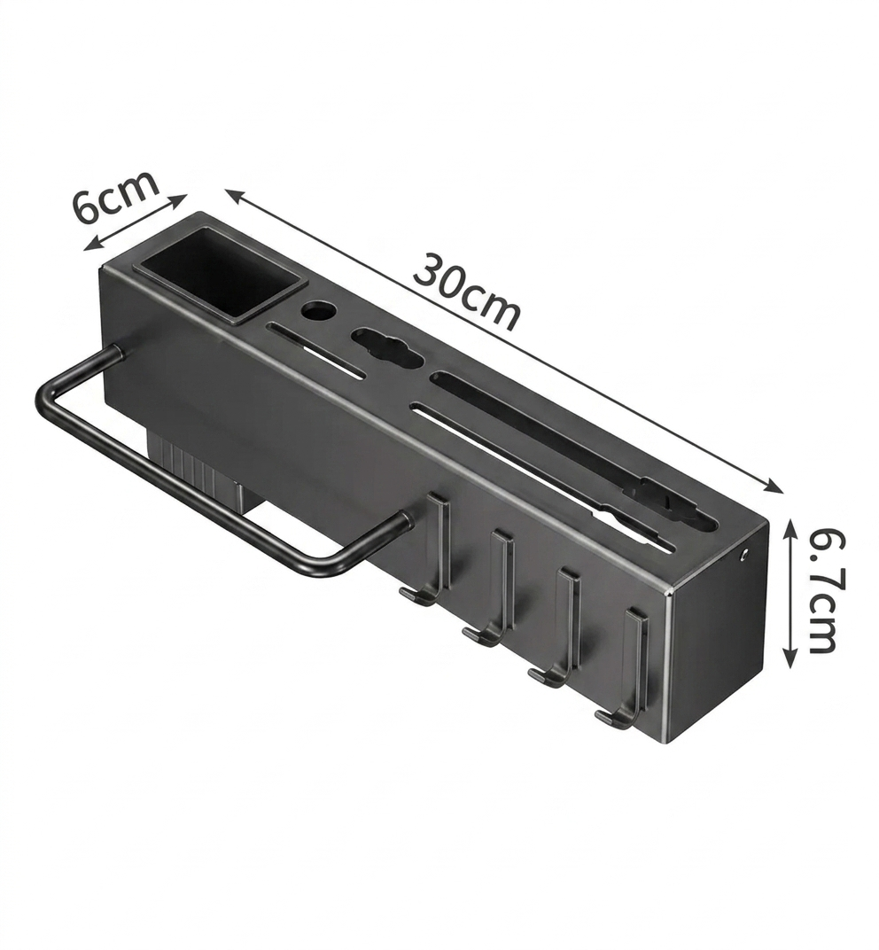 Maximizá el espacio de tu mesada con el Rack de Cocina Elegant. Este estante de pared multifuncional está diseñado para centralizar tus herramientas de cocina con un estilo moderno y minimalista. Fabricado en metal de alta resistencia con acabado negro mate, es el accesorio ideal para instalar cerca de la zona de cocción, manteniendo todo a la vista y facilitando el flujo de trabajo mientras cocinás. ✅