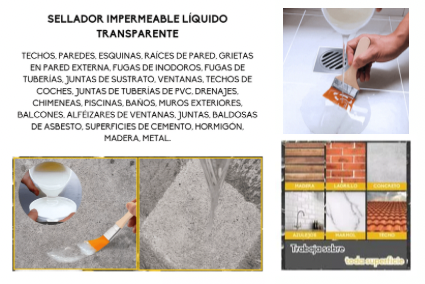 ✨El Adhesivo Transparente Impermeable es la solución ideal para reparar filtraciones y fugas de agua en cualquier superficie. Con su fórmula de secado rápido y resistencia a altas temperaturas, mantendrás tu hogar protegido contra el agua, sin complicaciones.🚫💦