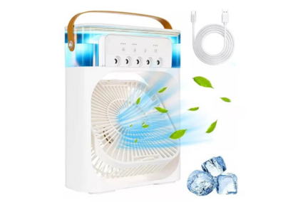Mini ventilador, aire acondicionado y humidificador de aire con 3 pulverizadores, es portátil con 3 velocidades de aire y luz LED con 7 colores. Descripción del producto Hay tres velocidades: reduce la temperatura y refresca el aire a través de la evaporación del agua. Función de sincronización: 3 tipos de sincronización automática (1H/2H/3H), puede elegir la más adecuada para disfrutar de su tiempo de ocio, sueño o trabajo. Diseño de asa de cuero: hace que el enfriador de aire evaporativo sea fácil de llevar a donde quieras. Ajustable hacia arriba y hacia abajo: ajuste manualmente la dirección de soplado hacia arriba y hacia abajo a 60 grados para crear su propia zona de enfriamiento personal. Diseño de tanque de agua extraíble: puede ayudarle a limpiar mejor el tanque de agua y puede agregar cubitos de hielo. Luces LED de 7 colores El aire acondicionado privado puede mostrar luces LED de 7 colores, puede elegir su color favorito a voluntad, y también hay un modo de gradiente. Trae más diversión a tu familia. También se puede utilizar como luz nocturna. La luz es suave y no le molestará para descansar, pero si es muy sensible a la luz, puede apagarla. Súper silencioso y ahorra energía Nuestro ventilador de aire tiene poco ruido, por lo que no será molestado cuando esté trabajando o durmiendo. Solo necesita agregar agua al tanque de agua para producir aire fresco. Este ventilador enfriador de aire es más respetuoso con el medio ambiente, ahorra energía y tiene un bajo consumo de energía, contiene 400 ml de agua en Su compartimento y puede pegar algunos cubitos de hielo para enfriarlo aún más en el lugar. Especificaciones técnicas: -Potencia: 10W -Capacidad del tanque de agua: 400ml -Voltaje: 5V -Ruido: 40-50db -15 cm -- Multiusos: es una luz nocturna por la noche, y también se puede utilizar como un difusor de aroma entre semana, integrando múltiples funciones en una. -- Luces LED de 7 colores: con luz nocturna de color ajustable. -Diseño de mango de cuero, antideslizante y cómodo al tacto. -Función: 3 niveles y 3 pulverizadores, ventilador de alto volumen de 6 pulgadas, tanque de almacenamiento de agua de 400ml, que se puede encender a la vez. Descripción: Nombre del producto: ventilador de aire acondicionado Material del producto: ABS + componentes electrónicos Tamaño del producto: 21x11,5x27,5 cm Color del producto: Blanco/Negro/verde Voltaje nominal: DC5V/1A Potencia nominal: 5W Número de aspas del ventilador: 3 Engranaje de velocidad del viento: 3 niveles Depósito de agua: 400ml Horario: Sí Iluminación: color ajustable Función: 1. El ventilador se puede ajustar hacia arriba y hacia abajo, 2. Diseño de tanque de agua desmontable, 3. Simplemente conecte el cable USB al dispositivo, 4. Ultra silencioso y ahorrador de energía, 5. Establezca un área de comodidad personal. COLORES NEGRO Y VERDE
